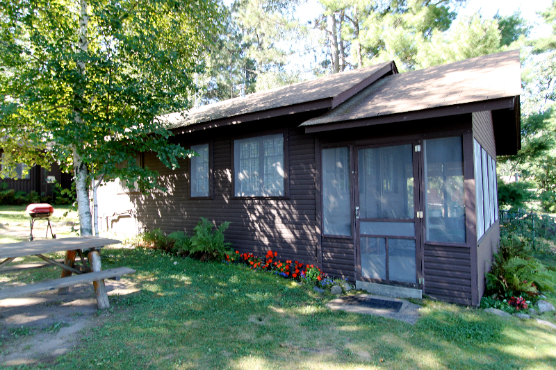 This one bedroom cottage is approximately 555 Sq. Ft. and sits 50 feet from the lake with screened porches front and back. Sleeping arrangements include a queen bed and a double sleeper couch in the living area. There is a 3/4 bath, fully equipped kitchen and gas fireplace heater. A picnic table and grill are included. Parking in the lot near the office.